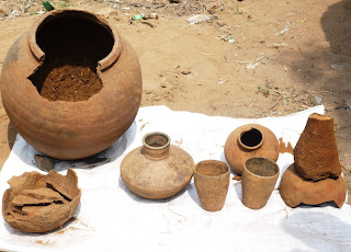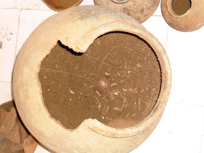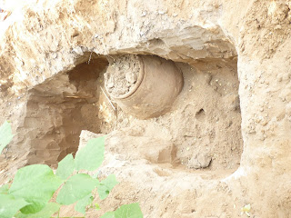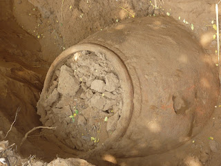முதுமக்கள் தாழி ஒன்று பெரிய அளவில் வெளியே எடுக்கப்படாமல் நிலத்தில் புதைந்த நிலையில் உள்ளது.எஞ்சிய பகுதிகளையும் முழுமையான அகழாய்வுக்கு உட்படுத்தினால் அரிக்கமேட்டின் ஆய்வில் புதிய ஒளி பிறக்கலாம். இன்று சுடுகாட்டுக்குச் செல்லும் பாதை பண்டைக் காலத்திலும் சுடுகாடாக விளங்கியிருக்குமோ என்ற ஐயத்தை எழுப்புகிறது. முன்பு இந்தப் பகுதிகள் மரங்கள் அடர்ந்த காடுகளாக இருந்துள்ளது என்று மக்கள் சொல்கின்றனர்.எழுத்துக்குறியீடுகள் ஏதேனும் இருக்குமோ என்று பார்த்தேன்.ஒன்றும் தென்படவில்லை. அழகிய வேலைப்பாடுகளுடன் பாண்டங்கள் உள்ளன. மீண்டும் இது பற்றி எழுதுவேன்.(ஆய்வாளர்களுக்குப் பயன்படும் எனக் கூடுதல் படங்கள் இணைத்துள்ளேன்.உரியவர்கள் தக்கபடி பயன்படுத்திக்கொள்ளலாம்)